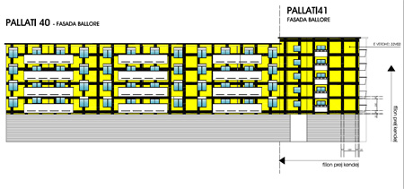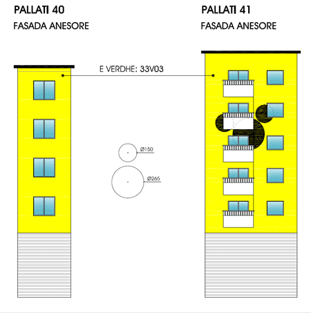 Title of the design: Les Confrontations Dramatiques The design indirectly refers to a fresco by Raphael in Stanza di Elidorio in the Vatican painted in 1514 depicting the deliverance of Saint Peter, who has been replaced by an image reminding of Micky Mouse. This image should be painted on the rear façade of the building #41, while the front facades of both buildings are provided with a black grid painted in bright yellow. Note that only the walls should be painted yellow, neither the balconies nor the window frames or other projecting architectural elements, which are to be painted white. ![]() |