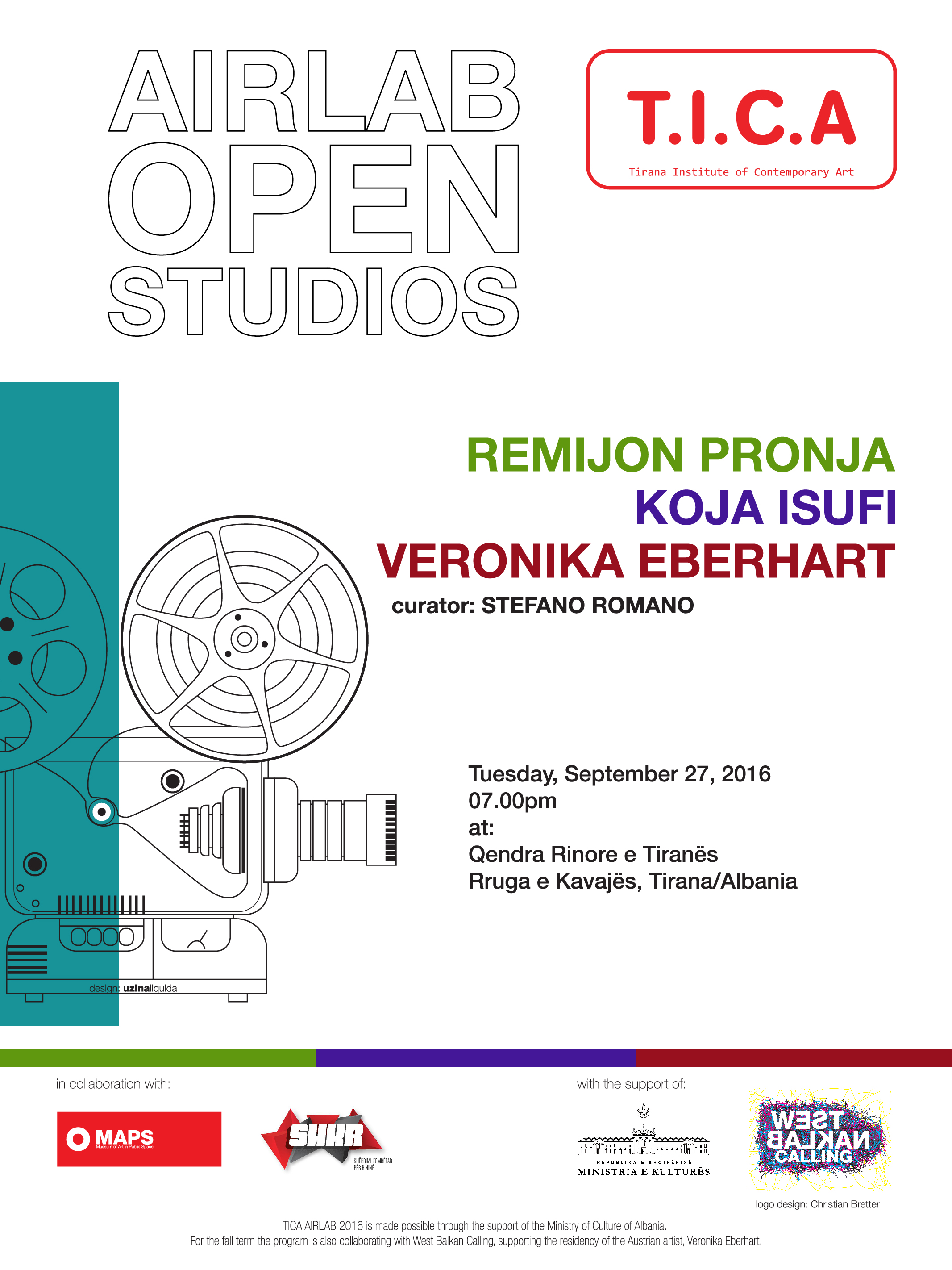 TICA AIRLAB 2016 is made possible through the support of the Ministry of Culture of Albania. For the spring term the program is also collaborating with Mondriaan Fund, supporting the residency of the Dutch artist, Su Tomesen.