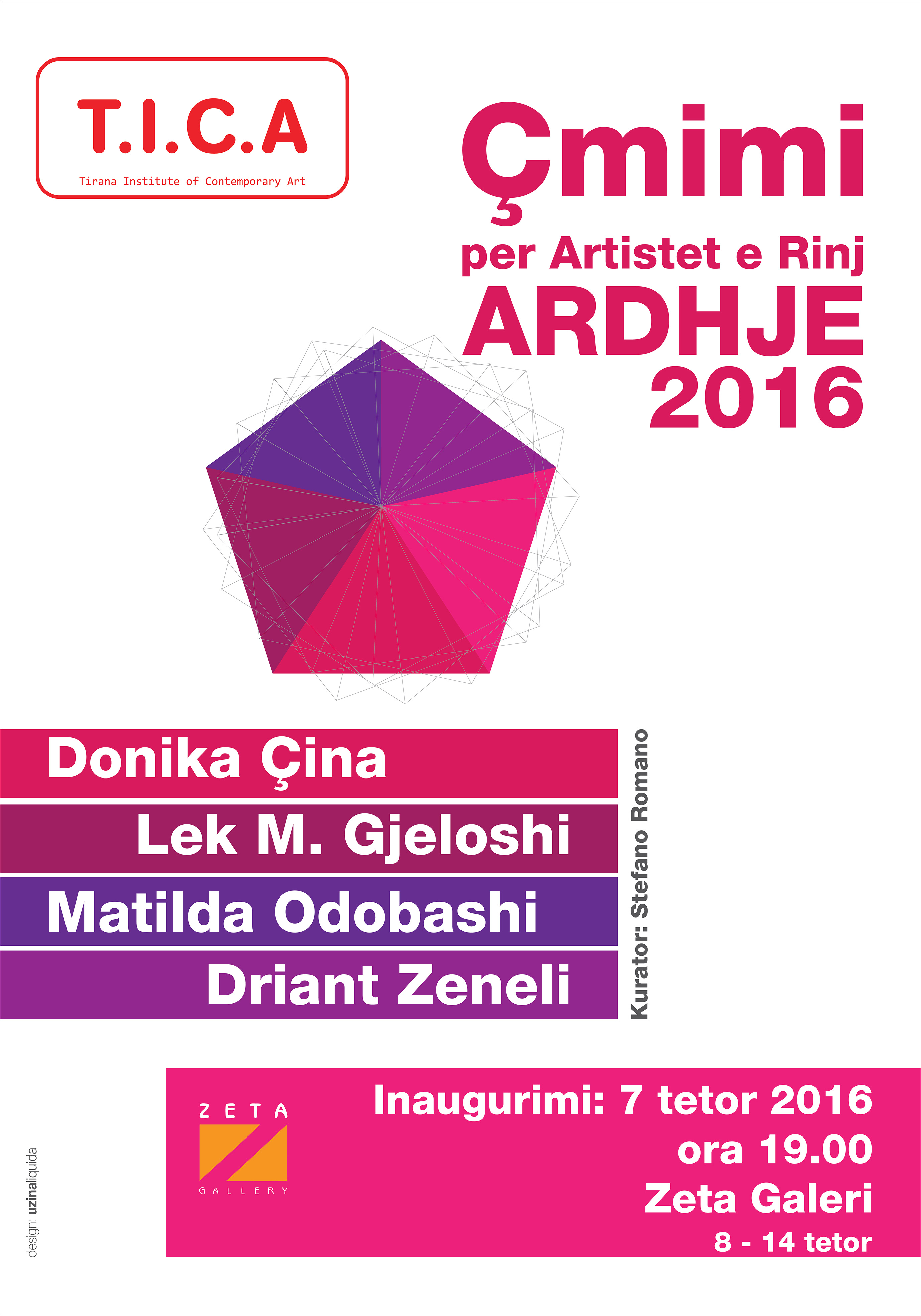 T.I.C.A. – Instituti i Artit Bashkekohor, Tirane ka kenqaesine te shpalle listen finale dhe ekspoziten me artistet e perzgjedhur per Cmimin e Artisteve te Rinj – ARDHJE 2016:
